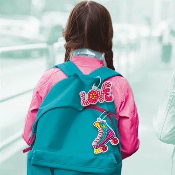 "Mit diesem Bastelset personalisieren Kinder ab 6 Jahren ihre eigenen Anhänger für den Schulrucksack, Schlüssel und mehr. Mit den im Set enthaltenen Strasssteinen entstehen bunte Kunstwerke wie ein Rollschuh, eine Wassermelone oder ein Milkshake und können einfach überall angebracht werden. Inhalt: 5 Anhänger, 1 Stift für Strasssteine, 1 Wachsplatte, 1 Behälter, 5 Kugelketten, 8 Beutel verschiedenfarbige Strasssteine. "