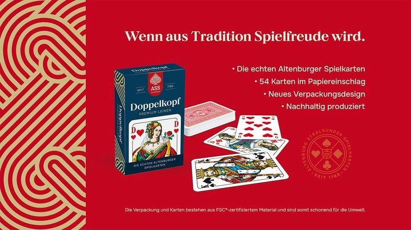 Das ist die entscheidende Frage, die es im Doppelkopfspiel zu Viert zu beantworten gilt. Dem Skatspiel ähnlich, gibt es mittlerweile ähnlich viele Anhänger. Ob mit 40 oder 48 Blatt - das ist der persönlichen Vorliebe überlassen. Das Spiel ist auf hochwertigem Leinenkarton gedruckt, der extra langen Spielspaß garantiert. (Neu für vergr. Ausgabe 4042677700223)