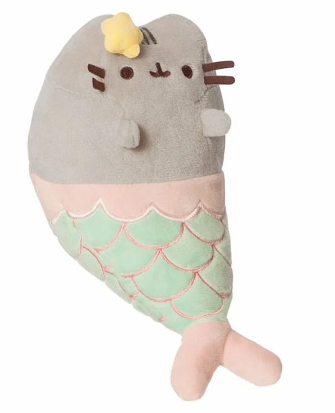 Dies ist ein wunderschönes kuscheliges Plüschtier Mermaid Pusheen Katze zum Sammeln. Sie ist aus superweichem, grauem Material gefertigt und mit gestickten Akzenten versehen, die Pusheen ihre charakteristischen Eigenschaften verleihen. Sie ist eine Mermaid Pusheen mit wunderschönem, aquafarbenem Schwanz und rosa Akzenten.