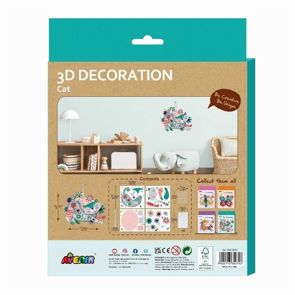 Gestalte deine eigene 3D Wanddekoration mit dem kreative Vergnügen zum Thema Katze. Ein ideales Geschenk für Gross und Klein, das jedes Zuhause verschönert. Die Verpackung misst 22 x 1.2 x 28.8 cm