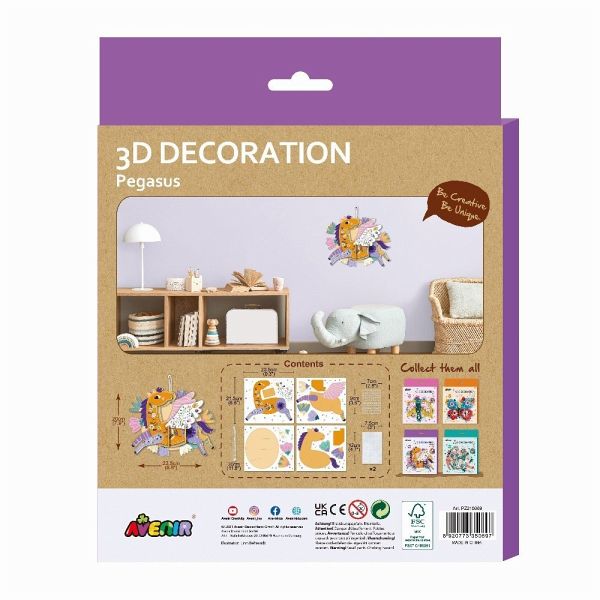Gestalte deine eigene 3D Wanddekoration mit dem kreative Vergnügen zum Thema Pegasus. Ein ideales Geschenk für Gross und Klein, das jedes Zuhause verschönert. Die Verpackung misst 22 x 1.2 x 28.8 cm