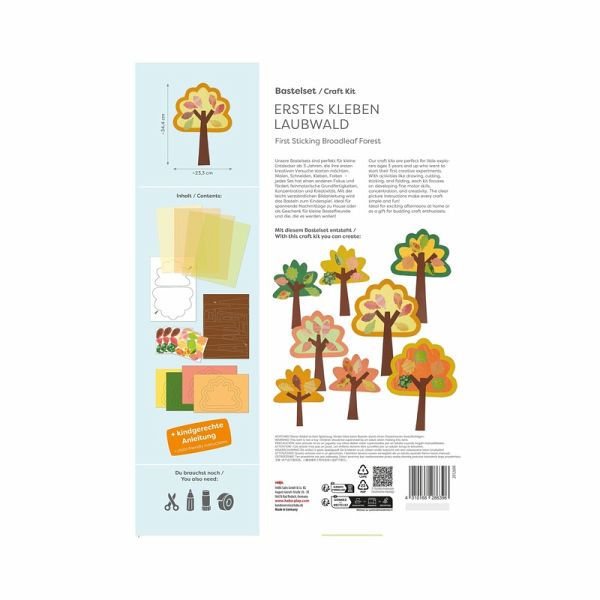 Der Herbst wird bunt! Mit diesem Bastelset gestalten ganz einfach einen herbstlichen Laubwald mit acht Bäumen. Die vorgestanzten Tonkarton-Teile werden gelöst und mit Transparentpapier zusammengeklebt ideal zum Kleben lernen oder für erste Klebeübungen. Mit bunten Blätter-Aufklebern dekoriert, entsteht eine farbenfrohe Herbstdeko für Fenster oder Wand. Perfekt für Kinderzimmer, Kindergarten oder Schule!