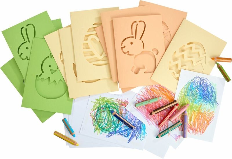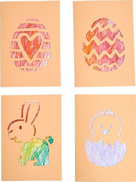Nanu, ist denn schon wieder Ostern? Wer dieses Jahr ganz persönliche Ostergrüße versenden möchte, macht mit diesen Kritzelkarten alles richtig. Zuerst werden die Karten gefaltet. Kinder ab 3 Jahren dürfen dann nach Lust und Laune auf einem separaten Papier drauf los kritzeln. Das Kunstwerk wird zum Schluss einfach an die Vorderseite der Karte geklebt und kann sofort verschenkt werden.