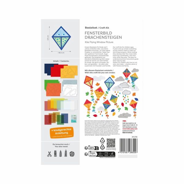 Lass die Drachen fliegen! Mit diesem Bastelset entsteht ein herbstliches Fensterbild mit Drachen, Wolken, wirbelnden Blättern und bunten Regentropfen perfekt als herbstliche Fensterdeko. Aus Fensterfolie, Tonkarton und Transparentpapier gebastelt, sorgt das Set für eine farbenfrohe Dekoration am Fenster, die richtig Lust auf den Herbst macht. Ideal für kreative Bastelstunden und eine fröhliche, kunterbunte Deko für jedes Fenster!