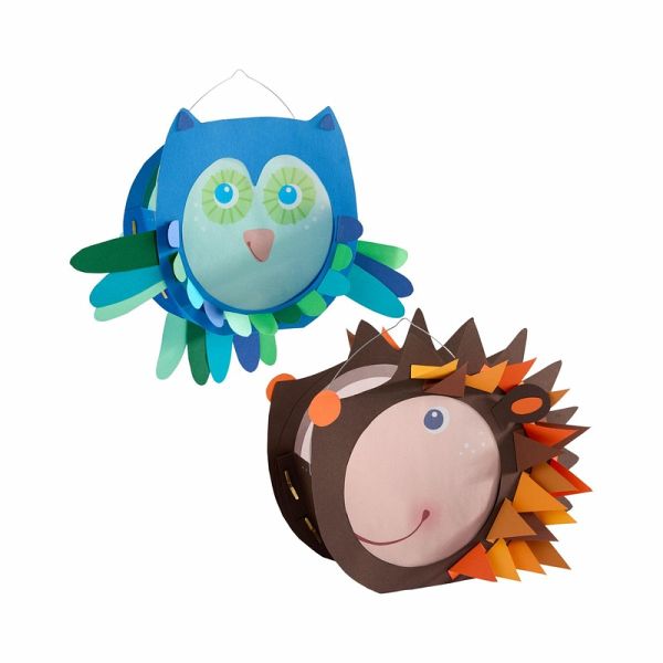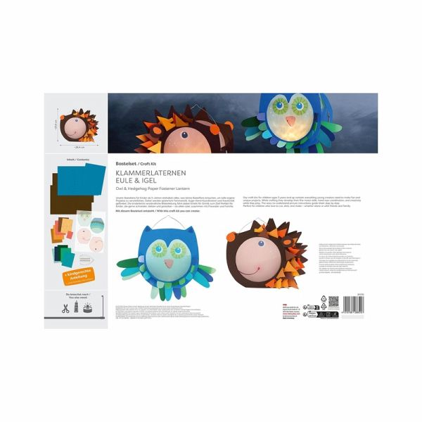 Eule und Igel leuchten um die Wette! Mit diesem Set entstehen zwei stimmungsvolle Klammerlaternen perfekt für den Laternenumzug. Die Laternenkörper werden einfach gefaltet und mit Klammern fixiert, ganz ohne Klebstoff oder lange Trocknungszeit. Transparentpapier hinterlegen, Formen ausschneiden und aufkleben, dann ein elektrisches Teelicht einsetzen. So entstehen im Handumdrehen bezaubernde Laternen für herbstliche Abende und kreative Bastelstunden.