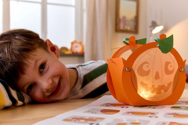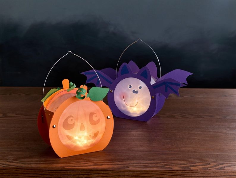 Schaurig-schöner Bastelspaß für Halloween! Mit diesem Set lassen sich zwei Mini-Klammerlaternen in Kürbis- und Fledermaus-Optik gestalten ideal für den Laternenumzug oder als gruselige Halloween-Deko. Die Laternenkörper werden gefaltet und mit Klammern befestigt, ganz ohne Klebstoff. Danach wird Transparentpapier hinterlegt, die passenden Motive ausgeschnitten und aufgeklebt. Mit einem elektrischen Teelicht beleuchtet, sorgen die fertigen Laternen für eine besonders stimmungsvolle Atmosphäre an dunklen Herbstabenden.