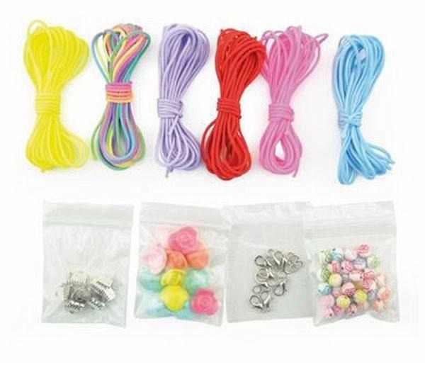 Machen Sie modische Armbänder mit farbigen Perlen. Inhalt: Nylonschnüre, Perlen, Metallringe und Verschlüsse Größe: 22,7 x 19 x 4,2