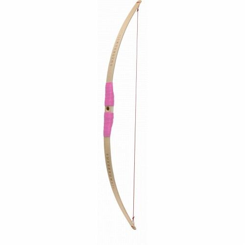 - Kinderbogen mit Loch und Lasergravur 80 cm aus Buchenholz mit pinker Kunstlederwickelung, inklusive 3 speziell angepasster Holzpfeile (ohne Federn)