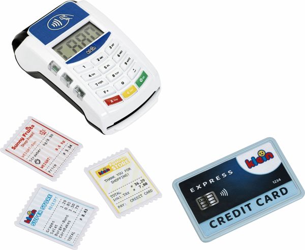 Bezahl-Terminal II mit Licht & Sound - Batteriebetrieben - Kreditkartenschlitz mit Sound - Contactless Payment Funktion Mit Zubehör: - 3 Belegkarten - 1 Kreditkarte mit Contactless-Payment Funktion - Geeignet für Kinder ab 3 Jahren