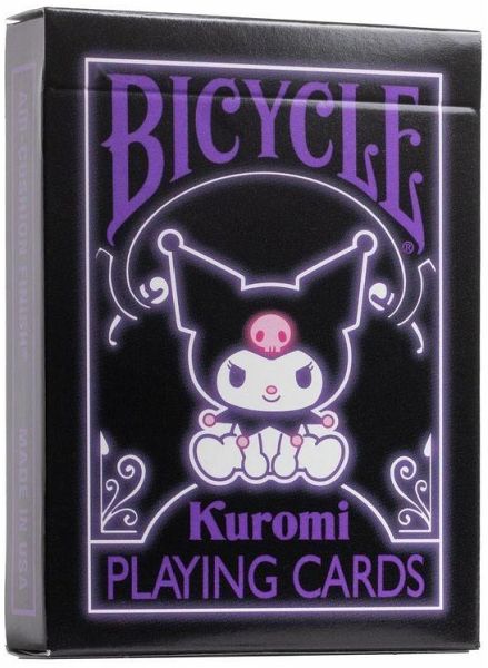 Bringt mit den Bicycle Kuromi-Spielkarten ein rebellisches Flair in euren Spieleabend! Dieses Kartenspiel in Neonpink und Lila auf kräftigem Schwarz spiegelt Kuromis frechen Stil wider, während sie ihren ikonischen Narrenhut trägt. MERKMALE Kuromi und ihr Kumpel Baku verbreiten Unfug auf den Bildkarten. Entdeckt ausgefallene Überraschungen wie Kronleuchter, Hot Rods, niedliche Totenköpfen und mehr auf den Zahlenkarten. Das patentierte Air Cushion Finish sorgt für optimale Kartenhandhabung, exzellentes Misch-Verhalten und lange Haltbarkeit. Hergestellt in den USA.