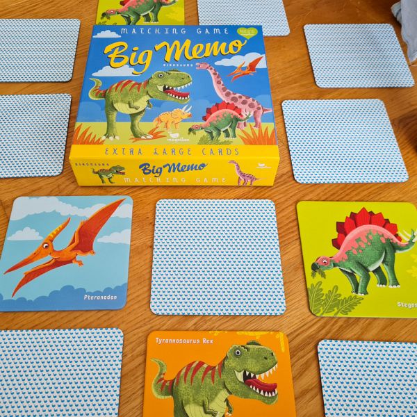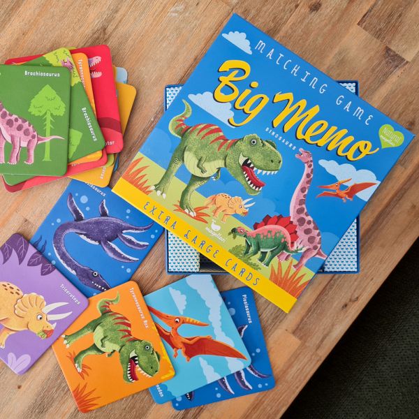 In diesem lustig-bunten Memo-Spiel können kleine und große Dino-Fans acht der bekanntesten Saurier entdecken und ihre Namen lernen. Mit extragroßen Karten lassen sich Spielspaß und Wissensvermittlung miteinander kombinieren und auf spielerische Weise das Gedächtnis trainieren.