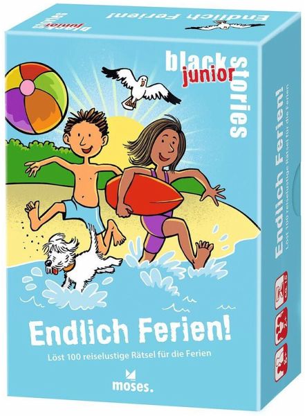 Kurios. Knifflig. Kreativ. Das sind black stories junior! Dieser XXL-Rätselspaß ist ideal für den nächsten Familien-Ferientrip: Im Strandkorb, auf der Alm oder am See. Aber auch, wenn die Zugfahrt in den Urlaub einfach mal wieder zu lange dauert oder der Stau allen im Auto den letzten Nerv raubt. Wer schafft es, die reiselustigen Rätsel zu lösen?