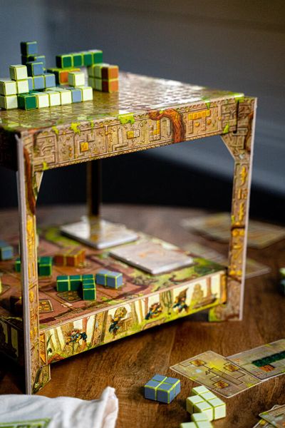 Das Spiel an sich ist kurzweilig, optisch ansprechend – insbesondere die schweren Steine machen etwas her – und kann angenehm fordernd sein. Den Tempel korrekt zusammen zu stellen ist etwas hakelig und wenn das nicht richtig gemacht wird – es gibt keine Anleitung/Hinweise hierzu – wackelt es die ganze Zeit. Auch die Spielanleitung lässt hier und da etwas zu wünschen übrig, aber man kommt schon rein ins Spiel. Die Idee mit der zu berücksichtigen 2D-Perspektive zum Erfüllen der Aufgabenkarten ist einerseits cool, andererseits, je nach Körpergröße, etwas hinderlich, um den wirklich optimalen Blick auf das Geschehen zu haben. Auch, dass man sich schon mal leicht vertun kann und damit versehentlich schummelt oder immer alle um den Tisch kommen müssen, um mit zu schauen, ob es passt, kann den Spielfluss hemmen.