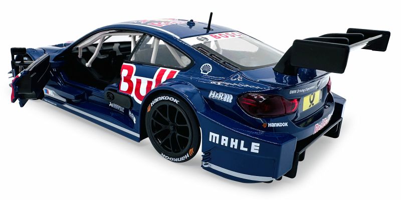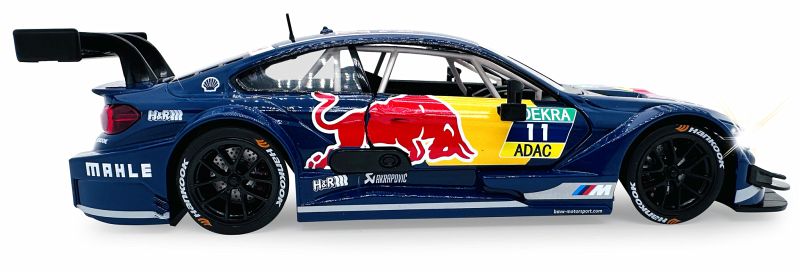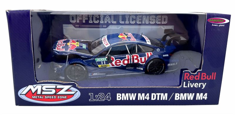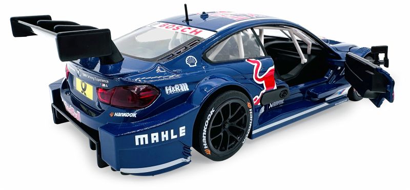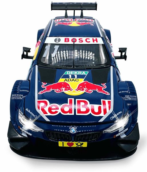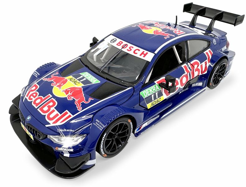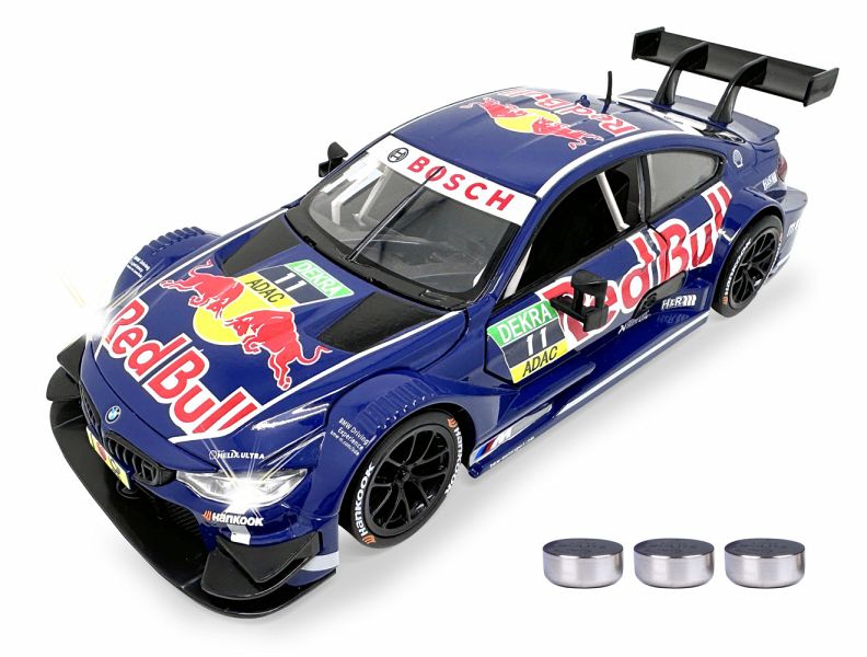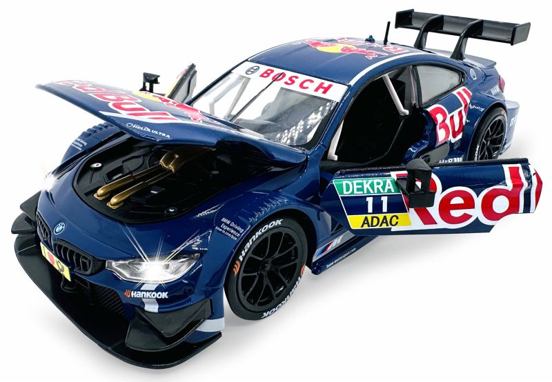 Der BMW M4 DTM ist die Rennversion des BMW M4, speziell entwickelt für die Deutsche Tourenwagen Masters (DTM). Mit seinem aerodynamischen Design, einem kraftvollen Turbo-Motor und einer auf Leistung optimierten Fahrwerksabstimmung stellt der M4 DTM die Spitzenleistung von BMW im Tourenwagensport dar. JAMARA bringt dieses einzigartige Fahrzeug im hochwertigen Metall DIECAST 1:24 Maßstab in Ihre Sammlervitrine mit vielen kleinen Details, die jeden Fan begeistern werden. Das offiziell lizenzierte Modell begeistert mit einem detailgetreuen Innenraum und originalgetreuem Design, das die markante Linienführung des DTM-Boliden perfekt widerspiegelt. Die Kabine ist für eine Spielfigur ausgelegt, während Gummireifen und eine transparente Windschutzscheibe für zusätzliche Authentizität sorgen. LED-Leuchten setzen den BMW M4 DTM eindrucksvoll in Szene. Die Türen und die Motorhaube lassen sich manuell öffnen und schließen. Realistische Geräuscheffekte erklingen beim Drücken der Karosserie sowie beim Öffnen der Türen und machen das Modell zu einem echten Highlight für Motorsport-Fans. Der BMW M4 DTM von JAMARA ist nicht nur ein echter Hingucker für Ihre Vitrine, sondern auch ein Muss für jeden Sammler und Enthusiasten von Deutschen Tourenwagen.