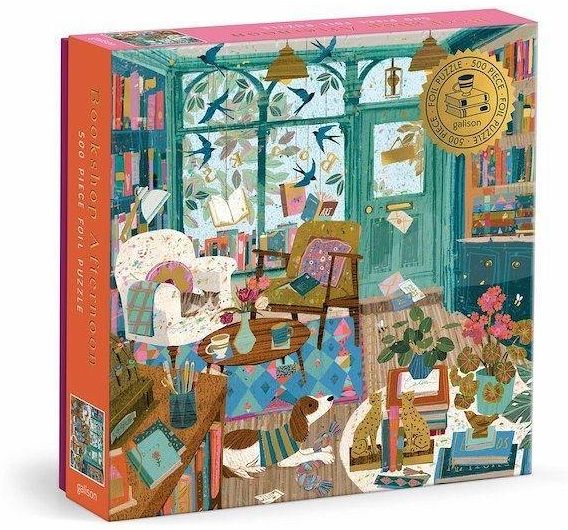 Step into the inviting warmth of a beloved bookshop with our charming 500-piece puzzle featuring artwork of a cozy scene adorned with comfy chairs nestled among towering bookshelves. Each piece of this puzzle captures the timeless charm and comforting ambiance of a sanctuary for book lovers, inviting you to lose yourself in the serenity of a good read.