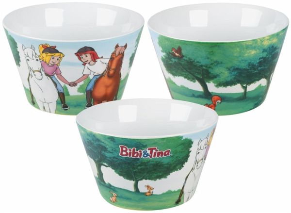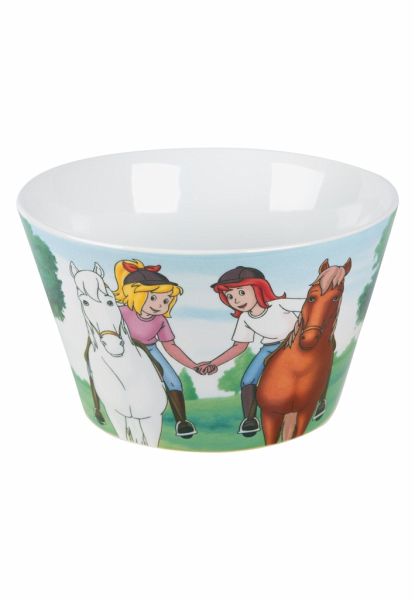 BIBI & TINA MÜSLISCHALE: Die niedliche Bibi & Tina Schale ist eine großartige Porzellanschüssel. Das schöne Design bringt gute Laune an jeden Frühstückstisch. Die Müslischüssel überzeugt durch den süßen Aufdruck vom Bibi & Tina.