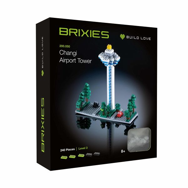 Entdecke mit den BRIXIES Bausätzen aus bunten Klemmbausteinen die Sehenswürdigkeiten der Welt. Reise wo hin du willst, oder genieße während deiner Wartezeit die unfassbare Aussicht mit unserem Bausatz "Changi Flughafenturm".Das Set "BRIXIES Changi Flughafenturm" besteht aus insgesamt 240 Steinen und ist zusammengebaut 14,3 cm lang, 4,6 cm breit und 15 cm hoch. Die Baustein-Sets von BRIXIES sind ab 8 Jahren geeignet. Die Klemmbausteine bestehen aus hochwertigem ABS Kunststoff und entsprechen den aktuellsten Sicherheitsstandards. Dieser Bausatz des Schwierigkeitsgrads Level 3 fördert die Geschicklichkeit und Konzentration und bereitet gleichzeitig sehr viel Freude.