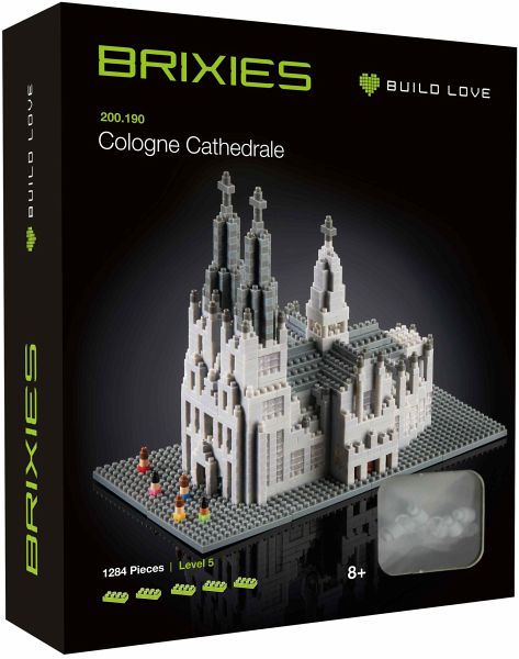 Entdecke mit den BRIXIES Bausätzen aus bunten Klemmbausteinen die Sehenswürdigkeiten der Welt. Steige mit unserem Bausatz "Kölner Dom" 157 Meter in die Höhe und genieße den Ausblick auf den Rhein oder die Hohenzollernbrücke.Das Set "BRIXIES Kölner Dom" besteht aus insgesamt 1.284 Steinen und ist zusammengebaut 19,3 cm lang, 9,6 cm breit und 14,7 cm hoch. Die Baustein-Sets von BRIXIES sind ab 8 Jahren geeignet. Die Klemmbausteine bestehen aus hochwertigem ABS Kunststoff und entsprechen den aktuellsten Sicherheitsstandards. Dieser Bausatz des Schwierigkeitsgrads Level 5 fördert die Geschicklichkeit und Konzentration und bereitet gleichzeitig sehr viel Freude.