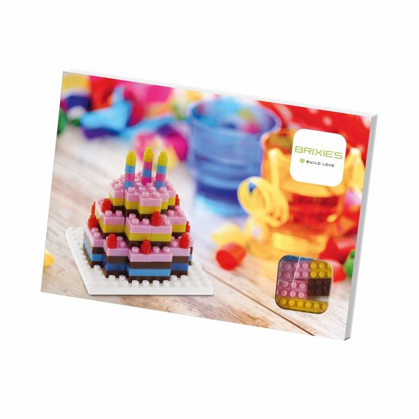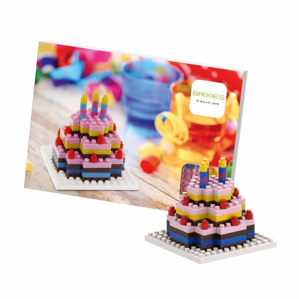 Happy Birthday to you, keine Zeit zum Kuchen backen? Macht nichts, versende Geburtstagsglückwünsche mit unserer Geburtstagstorte aus Klemmbausteinen! Die Postkarten von BRIXIES bereiten viel Freude beim Auspacken, Aufbauen und Sammeln.Die "BRIXIES Postkarte Geburtstagskuchen" beinhaltet einen Konstruktionsbausatz aus insgesamt 81 Klemmbausteinen und ist zusammengebaut 4,8 cm lang, 4,8 cm breit und 4,8 cm hoch. Die Baustein-Sets von BRIXIES sind ab 8 Jahren geeignet. Die Bausteine bestehen aus hochwertigem ABS Kunststoff und entsprechen den aktuellsten Sicherheitsstandards. Dieser Bausatz des Schwierigkeitsgrads Level 1 fördert die Geschicklichkeit und Konzentration und bereitet gleichzeitig sehr viel Freude.