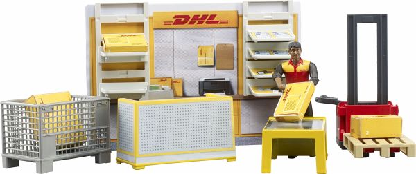 bworld, das ist die Spielwelt von BRUDER. Diese besteht aus beweglichen Figuren, Tieren, Zubehören und neuestens auch aus Themensets und ist den bekannten BRUDER Kategorien zugeordnet. Ob als Fahrer, Reiter, Wassersportler, in der Krankenstation, oder Motorradwerkstatt, bworld Artikel bieten schon alleine jede Menge Spielspaß und sind die ideale Erweiterung zu den detailgetreuen Fahrzeugen. Mit den neuen Themensets taucht man noch tiefer in die Bruderwelt ein. Bedruckte Wandelemente mit einfach zu montierenden Stellfüßen bilden nun den Raum für noch mehr Realität beim Spielen und mit dem neuen Regalsystem lässt sich auch mit den Elementen interagieren. DHL ist einer der weltweit führenden Logistik Dienstleister. Er bietet seinen Kunden ein vielfältiges Spektrum an Versanddienstleistungen in den DHL Filialen an. Bei BRUDER gibt es nun auch die DHL Filiale mit Ausrüstung und Figur. Pakete können hier abgeholt und aufgegeben werden, Versandboxen gekauft und auch die sonstigen Dienstleistungen in Anspruch genommen werden. Der im Set enthaltene Mitarbeiter hilft bei Fragen sehr gerne. Der DHL Store ist die perfekte Ergänzung zum unserem neuen DHL Sprinter (Art.-Nr. 02671) Und natürlich, ist der DHL Shop mit den anderen bworld Themensets einfach zu kombinieren.