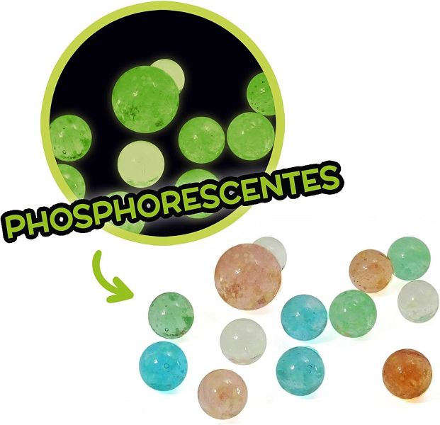 Eine Schachtel mit 163 Glasmurmeln in 4 Größen und 12 verschiedenen Designs. Auf der Rückseite der Schachtel finden Sie zwei Spielideen!