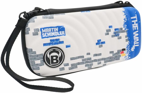 BULL'S Orbis S Dartcase Martin Schindler. Orbis steht für die neuste Generation der Hardcases. Bei der Entwicklung des Cases wurde der Fokus auf die Wünsche der Dartspieler gelegt. Die Orbis S Variante bietet aufgrund der Schaumstoffhalterung einen perfekten Halt <(>&<)> Schutz für ein komplettes Dart Set. Zusätzlich befinden sich zwei Extraseiten im Case, die Platz für 6 Sätze Flights und 12 Schäfte bieten. Eine praktische Netztasche mit Reißverschluss für Soft Tips <(>&<)> Zubehör ist ebenfalls integriert. Das Dartcase überzeugt dank hochwertigem und robustem EVA- Material sowie des modernen Designs mit BULL'S Logo. Punkten kann das Orbis zudem dank der Handlichkeit und der Raumaufteilung. Die Flights können auf dem Dart stecken bleiben ohne zu verknicken. Der Reißverschluss des Orbis ist verdeckt und leichtläufig. Diese spezielle Martin Schindler Edition besitzt das "The Wall" Design. Im Lieferumfang enthalten sind zusätzlich ein Karabinerhaken sowie eine Handschlaufe, die am Case befindet. Empfohlen für Kinder ab 8 Jahren.
