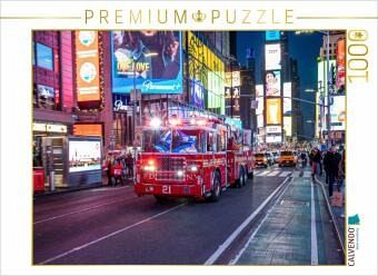 Feuerwehrfahrzeuge durchqueren den nächtlichen Times Square, Blaulicht mischt sich mit Reklameleuchten. Ein kontrastreiches Motiv, das hektische Innenstadt, Glamour und die unermüdliche Einsatzbereitschaft der FDNY in einem Bild vereint.