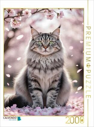 Diese Maine Coon Katze sitzt im Frühling unter blühenden Kirschblüten und zieht mit ihrem intensiven Blick sofort die Aufmerksamkeit auf sich. Das dichte Fell, die klaren Augen und die zarten Blütenblätter ergeben ein Motiv, das Katzenliebhaber und Naturfreunde gleichermaßen begeistert. Die Kombination aus einer der beliebtesten Katzenrassen und der Schönheit der Frühlingsblüte schafft ein einzigartiges Bild, das Ausdruckskraft und Natürlichkeit vereint. Perfekt auch als Geschenkidee. Bild mit KI generiert.