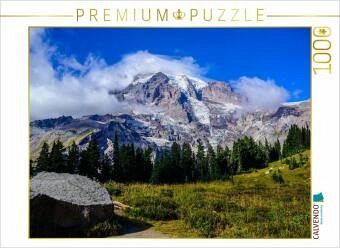 Inmitten des Mt Rainier Nationalparks liegt der Mt Rainier. Wenn sich der Berg aus den Wolken sichtbar macht, tritt die Schönheit des Berges, des Gletschers und Vulkans im Sonnenlicht hervor.
