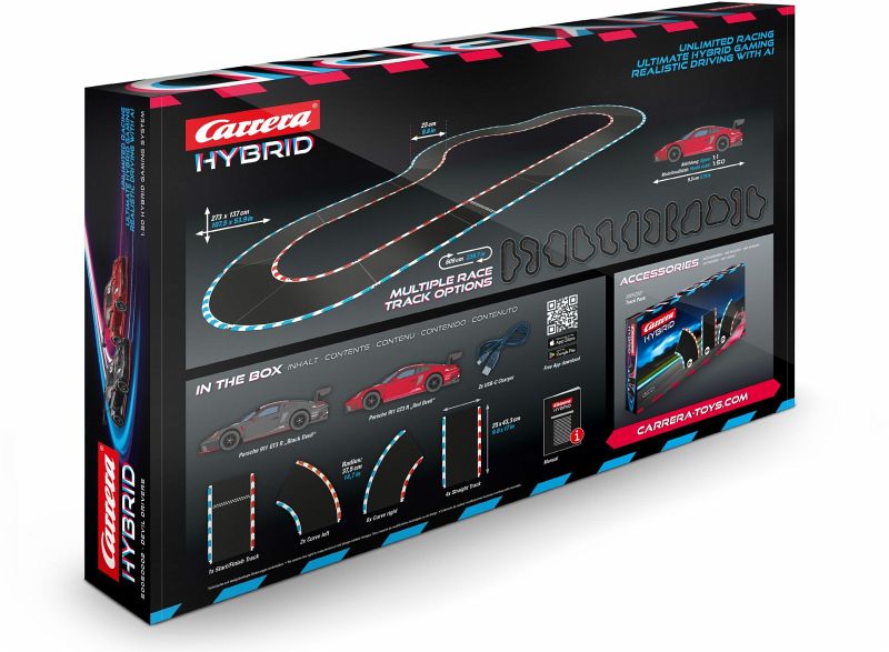 Carrera Hybrid - die perfekte Kombination aus Gaming und Rennspaß, denn die Fahrzeuge können vollkommen frei mit Vollgas über die Fahrbahn düsen. Die KI-Unterstützung ermöglicht ein realistisches Fahrerlebnis in verschiedenen Fahrmodi. Erlebe originalgetreue Fahrzeuge mit Front- und Rücklicht, gesteuert per kostenloser App. Mit automatischer Streckenerkennung, individuellen Einstellungen und authentischem Motorengeräusch bietet Carrera Hybrid ein einzigartiges Rennerlebnis. Entdecke zudem neue Fahrzeuge für noch mehr Rennaction!