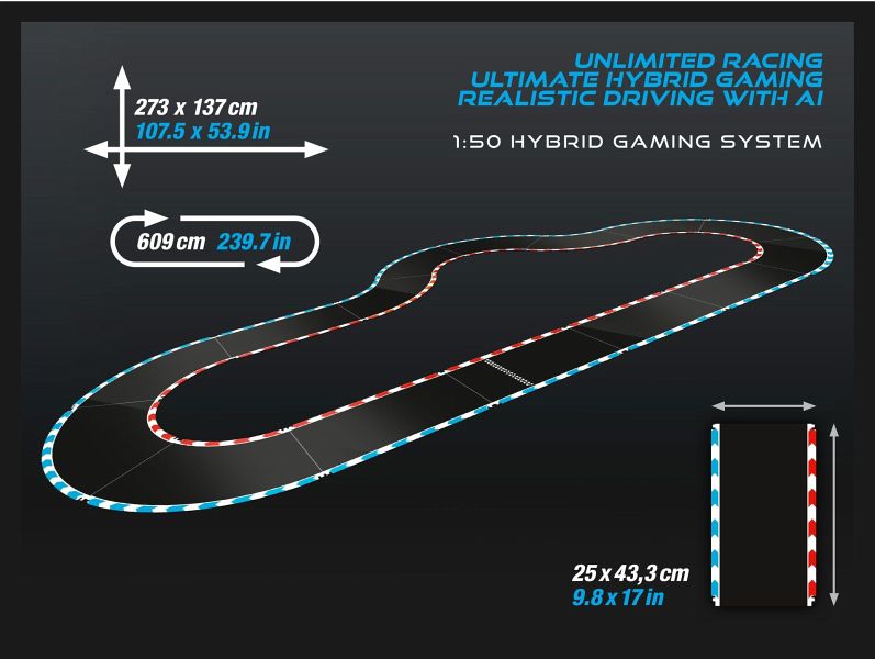 Maßstab Fahrzeuge: 1:50Aufbaumaße (cm): 268 x 136Streckenlänge (m): 6,09Altersempfehlung: Ab 12 Jahren