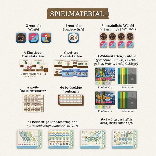 Eigenständiges Spiel in der Welt von Cascadia. Das preisgekrönte Spiel des Jahres 2023 jetzt als Roll & Write-Spiel. Im handlichen Format, ideal für den Urlaub oder unterwegs. Für 1-4 Spielerinnen und Spieler ab 10 Jahren. Kombinierbar mit Cascadia Rolling Hills für Spielspaß mit bis zu acht Personen. Willkommen in Cascadia, einem Land voller atemberaubender Landschaften und faszinierender Tierwelt! In diesem einzigartigen Roll & Write-Spiel können ein bis vier Spielerinnen und Spieler ab zehn Jahren ihre Strategie unter Beweis stellen. Es wird reihum gewürfelt, um Tiersymbole zu sammeln, Wildniskarten zu erfüllen und harmonische Lebensräume zu erschaffen. Die vier verschiedenen Arten von Landschaftsplänen halten immer wieder neue Herausforderungen bereit. Durch Kombination mit dem eigenständigen Spiel "Cascadia Rolling Hills" können bis zu acht Personen mitspielen. Die zwei Spiele haben die gleichen Grundregeln, unterscheiden sich allerdings durch ihre Landschaftspläne. Cascadia- ab sofort überall mit dabei.