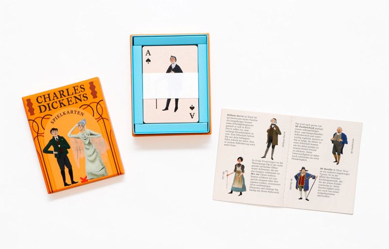 Spielen Sie Karten mit den Held_innen und Schurk_innen aus Dickens´ Romanen! Dieses wunderschöne Kartendeck zeigt die berühmtesten Figuren aus Dickens´ Welt und enthält zudem ein Booklet mit spannenden Erläuterungen zu den Personen und den Kartenspielen, die immer wieder in Dickens´ Romanen beschrieben werden. Ein Muss nicht nur für Bücherwürmer!