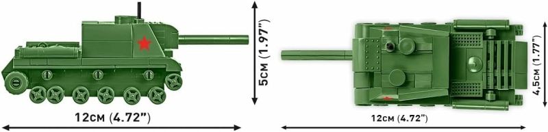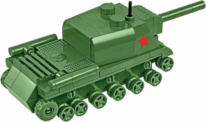 Das Minimodell aus COBI-Bausteinen wurde im Maßstab 1:72 entworfen und besteht aus 135 hochwertigen Elementen. Im gebauten Zustand ist das Fahrzeug 12 cm lang. Trotz seiner kompakten Größe behält das Modell alle wichtigen Merkmale seines historischen Vorbilds! An den Seiten des Fahrzeugs befinden sich aufgedruckte Markierungen. Das Modell ist perfekt für einen guten Start in Ihr Abenteuer mit COBI-Bausteinen. Auch für Sammler ist die ISU 152 ein interessantes Modell und Gadget. Es nimmt wenig Platz ein und findet problemlos seinen Platz auf dem Schreibtisch zu Hause, bei der Arbeit oder im Bücherregal.