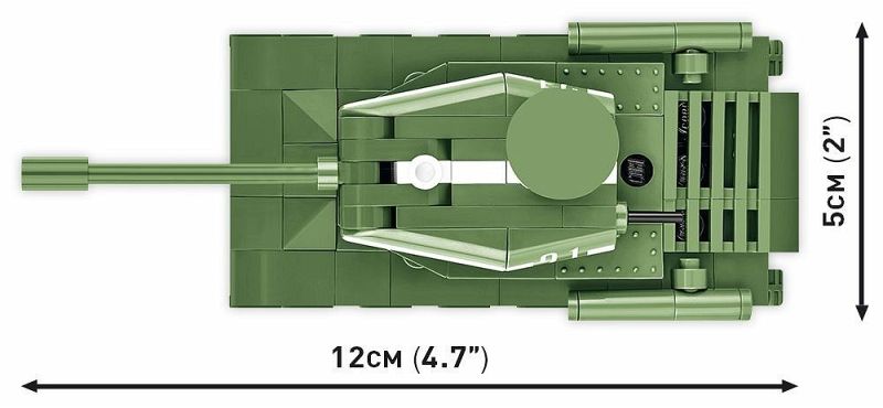 Aufgedruckte Markierungen und charakteristische weiße Streifen an den Seiten des Fahrzeugs weisen auf die Teilnahme an der „Aktion Berlin“ hin. Der Turm des Panzers ist beweglich und kann gedreht werden. Der Lauf bewegt sich in der Auf-Ab-Richtung. Das Modell ist perfekt für einen guten Start in Ihr Abenteuer mit COBI-Bausteinen. Auch für Sammler ist der IS-2 Panzer ein interessantes Modell und Gadget. Es nimmt wenig Platz ein und findet problemlos seinen Platz auf dem Schreibtisch zu Hause, bei der Arbeit oder im Bücherregal.