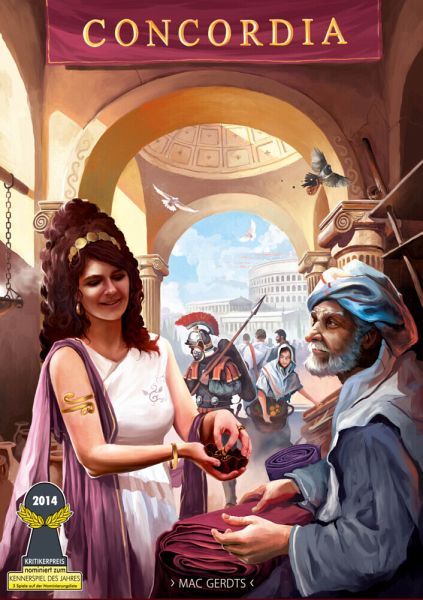 CONCORDIA ist ein friedliches Strategie- und Aufbauspiel im alten Rom für 2 - 5 Spieler ab 12 Jahren. Statt auf Würfel- oder Kartenglück müssen die Spieler darauf vertrauen, die richtigen strategischen Entscheidungen zu treffen. Dabei gilt es, die Mitspieler genau zu beobachten, welche Ziele sie verfolgen, und wo man ihnen vielleicht zuvorkommen kann.