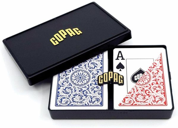 Die Elite-Serie von Copag präsentiert das klassischste Rückseiten-Design der Marke, das wunderschöne Blumenmuster vom Anfang des letzten Jahrhunderts- in dieser Version in rot und blau. Die Elite-Serie von Copag präsentiert das klassischste Rückseiten-Design der Marke, das wunderschöne Blumenmuster vom Anfang des letzten Jahrhunderts- in dieser Version in rot und blau. Dieses ikonische Muster war bereits in Filmen und Fernsehsendungen zu sehen und ist Teil vieler Pokerrunden auf der ganzen Welt. Lange Tradition - modernes Aussehen! ¿ Premium-PVC: langlebig und hochwertige Haptik ¿ Reibungsbeständiger Druck ¿ Beständig gegen Kratzer, Wasser und Markierungen ¿ Große Eckzeichen (Jumbo Index) + Karten in Pokergröße (63 x 88 mm) ¿ Hochwertige Kunststoff-Verpackung mit goldenem COPAG-Logo