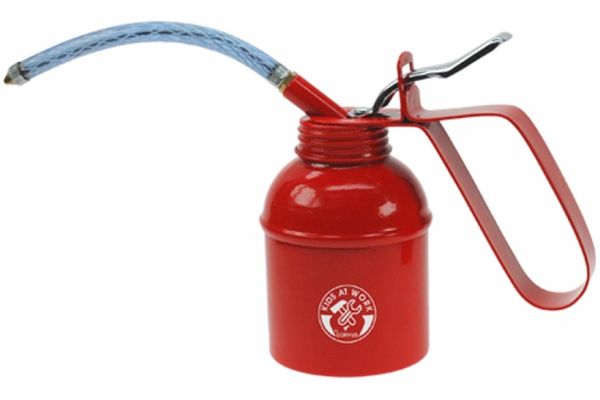 Blechölkännchen in rot mit flexiblem Befüllschlauch.