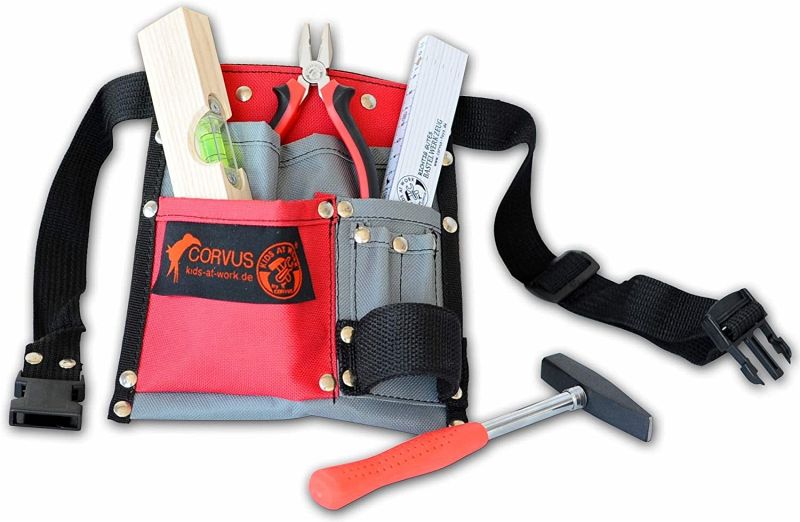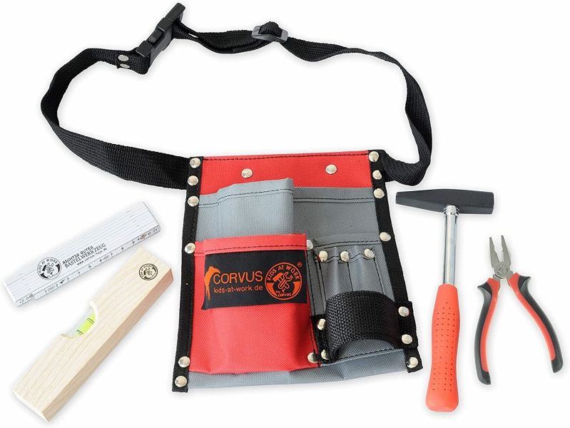 Kids At Work werkzeuggürtel mit Werkzeug Sind Sie ein echter Handwerker? Dann ist dieser Werkzeuggürtel mit Werkzeugen definitiv etwas, das Sie bei Ihrer Arbeit brauchen. Der Werkzeuggürtel besteht aus Textil in den Farben Grau und Rot. Der Gürtel hat fünf Taschen, einen verstellbaren Riemen und eine Schlaufe für den Hammer und andere Werkzeuge.
