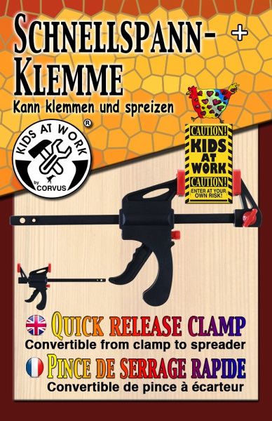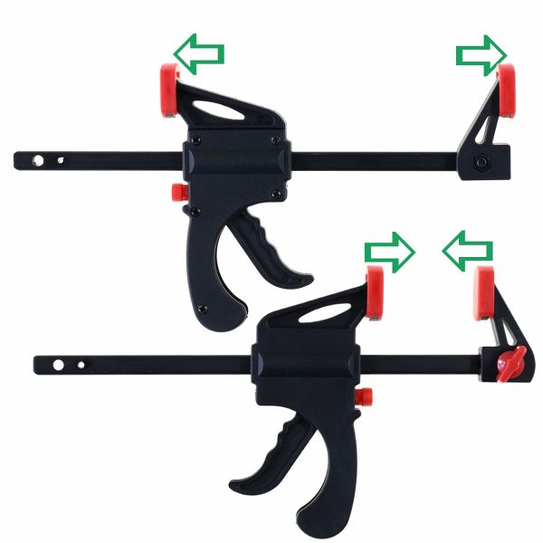 Kleiner handlicher Helfer, einhändig zu bedienen. DieKlemme kann leicht von Spannen (zusammendrücken) aufSpreizen (auseinanderdrücken) umgebaut werden. Bestens geeignet zum Fixieren von geklebten oder geleimten Werkstücken. Spannweite 10 cm.