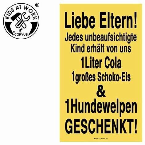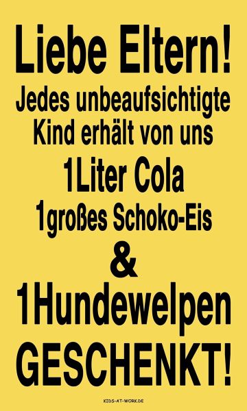 Ein Schild für den Laden, die Praxis, das Riesenrad, das Museum etc., halt da wo es gilt, Eltern und Kindern aufmerksam zu begegnen...