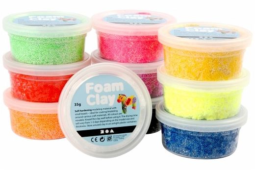 Selbsthärtende Modelliermasse mit kleinen Perlen. Ideal, um damit verschiedene Basteleien zu überziehen oder zu modellieren. Verpackt in praktischen Dosen. Nicht verbrauchtes Foam Clay bitte in einem luftdichten Plastikbehälter aufbewahren.