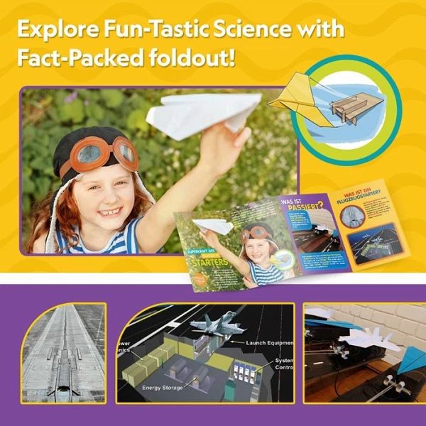 Mit diesem Set bauen Kinder ihren eigenen Flugzeugstarter und ein Flugzeug. Damit fliegen die Flugzeuge nur so um die Wette!
