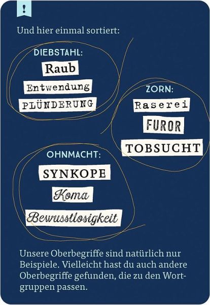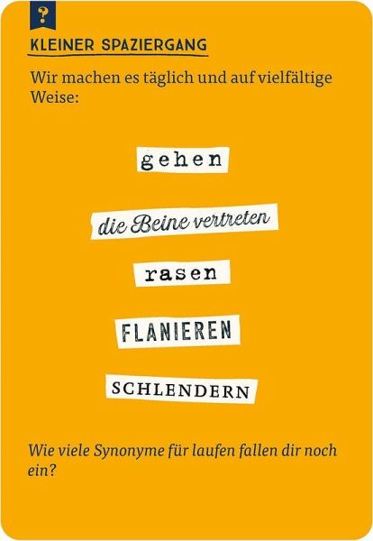 Dabei geht es nicht nur darum, bekannte Synonyme wie „reden – sprechen – plaudern“ zu erraten, sondern auch darum, überraschende und verblüffende Wortbedeutungen kennenzulernen. So entsteht ein lebendiges Spiel rund um die Schönheit und Kreativität der deutschen Sprache.