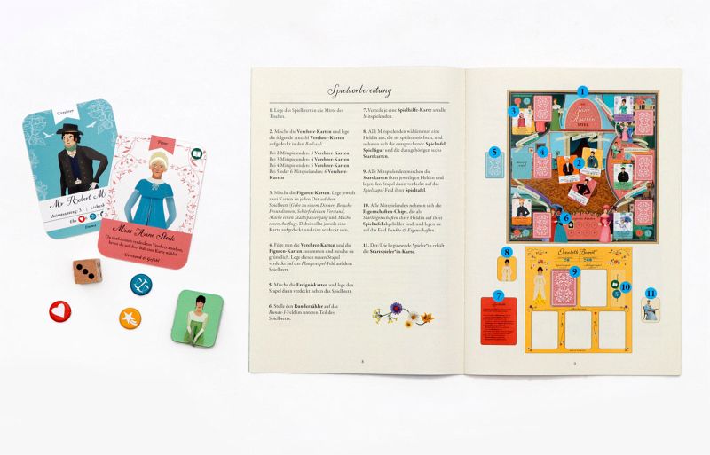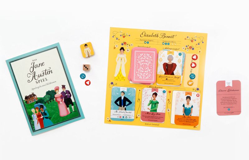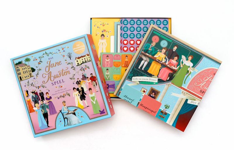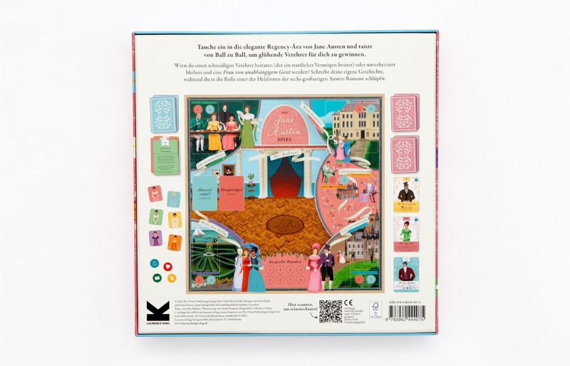 - Jane Austens Romane werden seit Erscheinen kontinuierlich verlegt und haben sich weltweit über 30 Millionen Mal verkauft- Auch die Verfilmungen sind erfreuen sich großer Beliebtheit- Treffen Sie in diesem neuen Brettspiel Charaktere aus Austens Romanen wieder und entscheiden Sie selbst über Ihr Schicksal!Tauchen Sie ein in die Welt von Jane Austen und tanzen Sie von Ball zu Ball, um glühende Verehrer zu sammeln. Werden Sie einen schneidigen Verehrer heiraten (der ein stattliches Vermögen besitzt) oder unverheiratet bleiben und eine Frau von unabhängigem Geist werden? Hier bestimmen Sie selbst, wie Sie Ihre Geschichte schreiben und Ihre Eigenschaften weiterentwickeln möchten, während Sie in die Rolle einer der Heldinnen der sechs großartigen Austen-Romane schlüpfen.