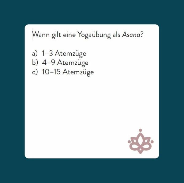 Dieses Wissensquiz besteht aus 66 Spielkarten und bietet eine spannende Mischung aus Fragen und Antworten rund um das Thema Yoga, darunter klassische Asanas wie der Sonnengruß und der herabschauende Hund. Es ist das ideale Spiel für Erwachsene, die ihr Wissen über Yoga testen oder erweitern möchten.