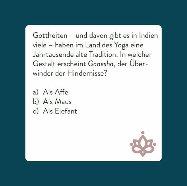 Das Yoga-Quiz ist ein tolles Rätselspiel für alle, die sich für Fitness, Achtsamkeit und Wohlbefinden interessieren. Ideal als Geschenk für Freunde oder Familie, die sich für die Welt des Yogas begeistern!