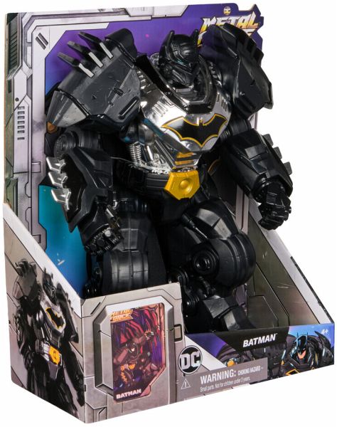 DCU Metal Force Hero Batman (30cm) Mit der 30cm großen Metal Force Batman Action-Figur beginnt der ultimative Wettkampf um das Schicksal des Universums. Werden Batman und Superman (separat erhältlich) mit ihren außerirdischen High-Tech Rüstungen die Superschurken besiegen? Die detailreiche Actionfigur verfügt über 8 Bewegungspunkte, trägt einen echten Stoffumhang und ist mit einer Rüstung im Metallic Look ausgestattet. So taucht man direkt in die spannenden Geschichten der Metal Force ein und stellt sich dem Kampf gegen die Superschurken im DC Universe. Packende Action zum Spielen und Sammeln - mit den 30cm-Figuren der Batman-Charaktere. Für Kinder und Sammler ab 4 Jahren Inhalt: _ 1 Actionfigur (30cm groß) _ 1 Sammelkarte _ 1 Kartenhalter Maße: 31,5 x 25,7 x 12,7 cm