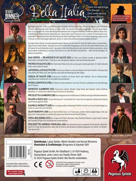 In Deadly Dinner Bella Italia kann außerdem eine Person die Rolle eines bzw. einer nicht tatverdächtigen Detektiv_in übernehmen.