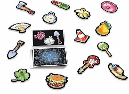 Es werden nach und nach Karten aufgedeckt, auf denen ein bis drei Objekte abgebildet sind und die Spieler müssen entscheiden, ob die darauf abgebildeten Gegenstände schon einmal auf vorherigen Karten zu sehen waren, oder nicht. Wenn ja, sollten sie schnell nach dem entsprechenden Plättchen grabschen, das zwischen all den anderen rund um den Kartenstapel verteilt liegen. Wer zuerst zugreift, nimmt es zu sich und am Ende gewinnt, wer die meisten Gegenstände sammeln konnte.
